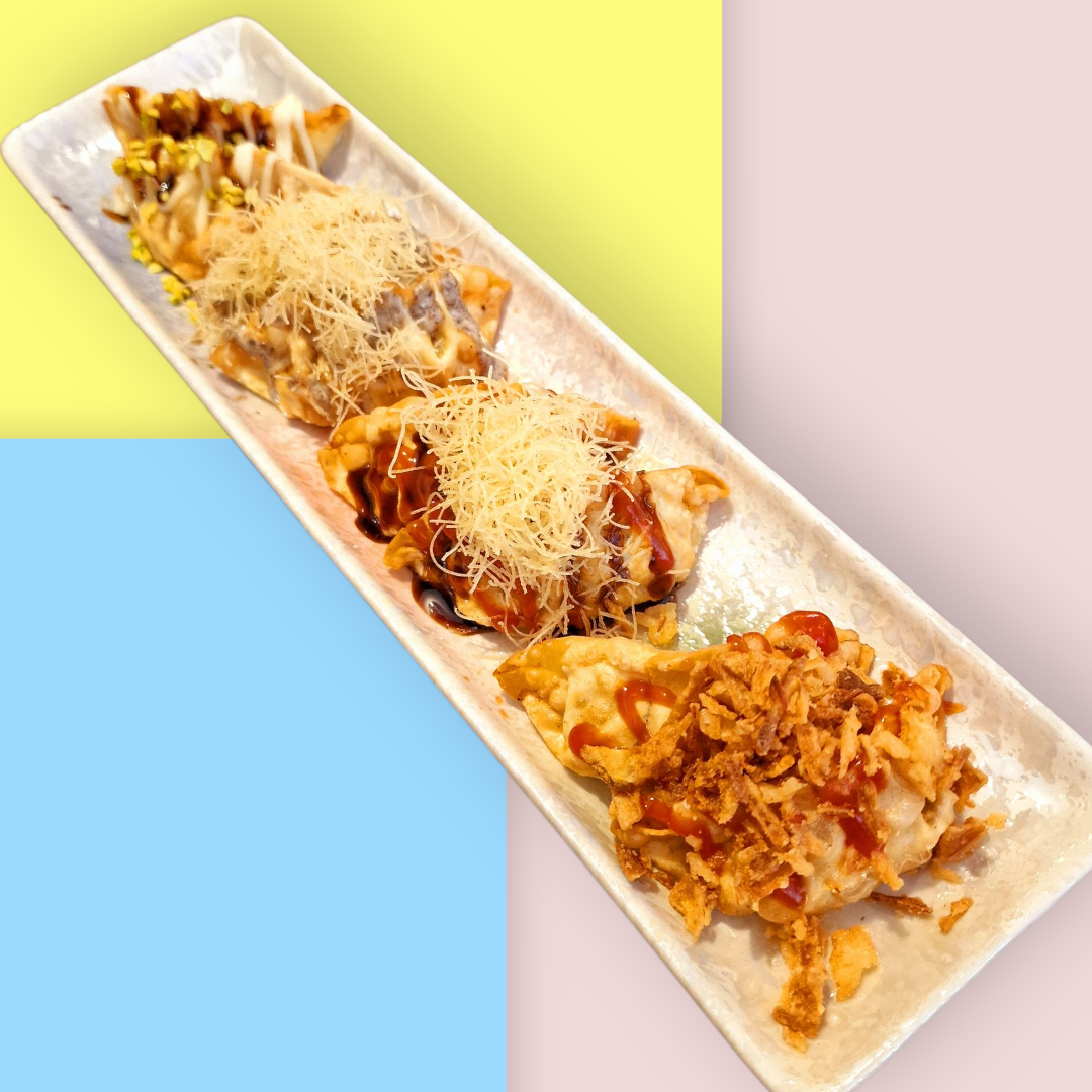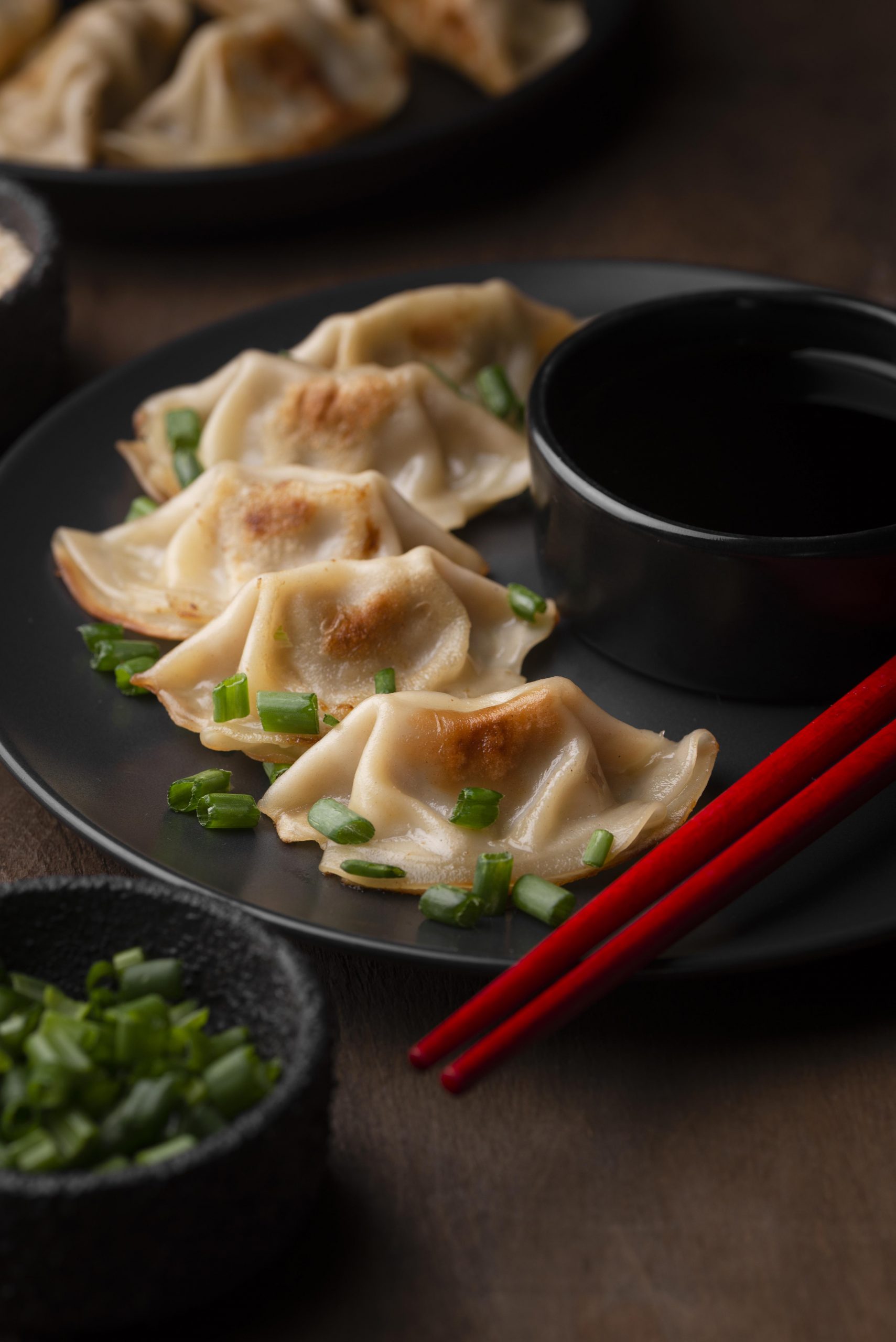 Ravioli giapponesi artigianali, dorati alla piastra e farciti con carne, verdure fresche e zenzero. Serviti con salsa ponzu allo yuzu per un tocco agrumato e irresistibile.